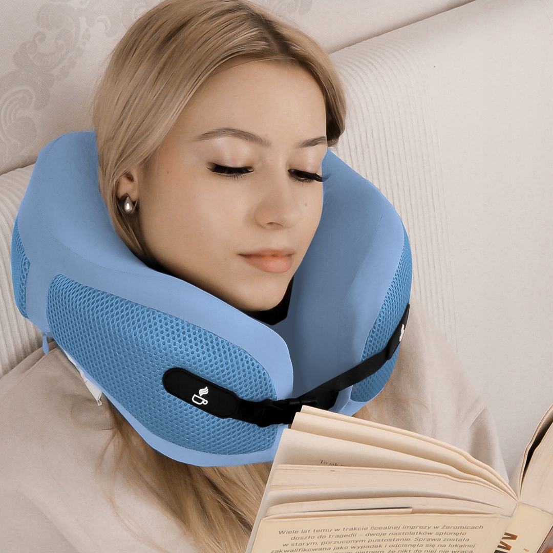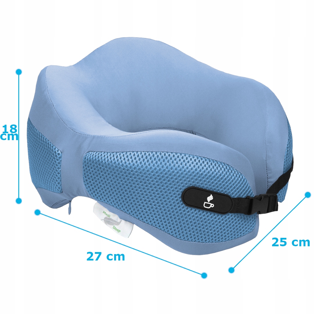 ➡️ Kształt poduszki: w kształcie rogala, gruba i wygodna, dobrze podpiera szyję,