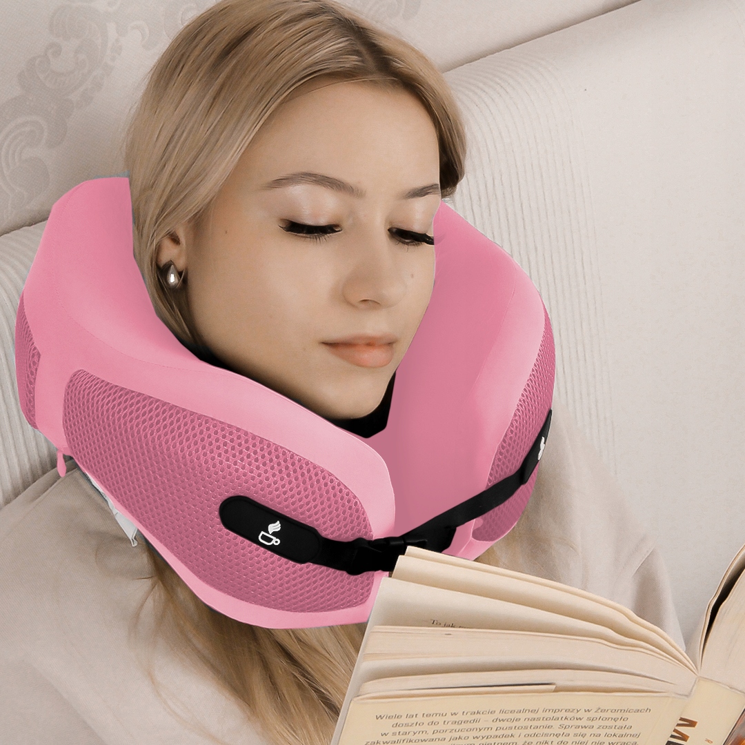 ➡️ Kształt poduszki: w kształcie rogala, gruba i wygodna, dobrze podpiera szyję,